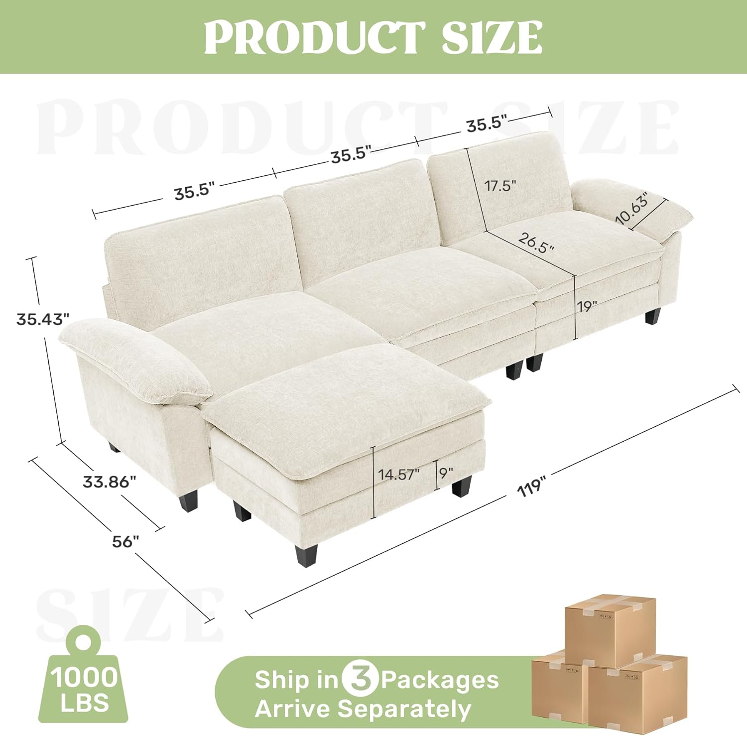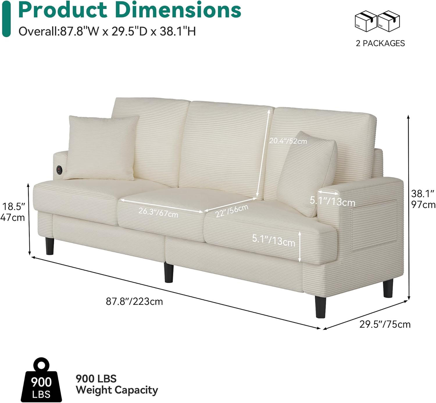 YITAHOME 88 inch 3 Seater Couch, Cloud Couches Sofas for Living Room with Extra Deep Seats, Modern Corduroy Comfy Sectional Sofa with USB & Type-C Ports for Apartment Small Space, Beige