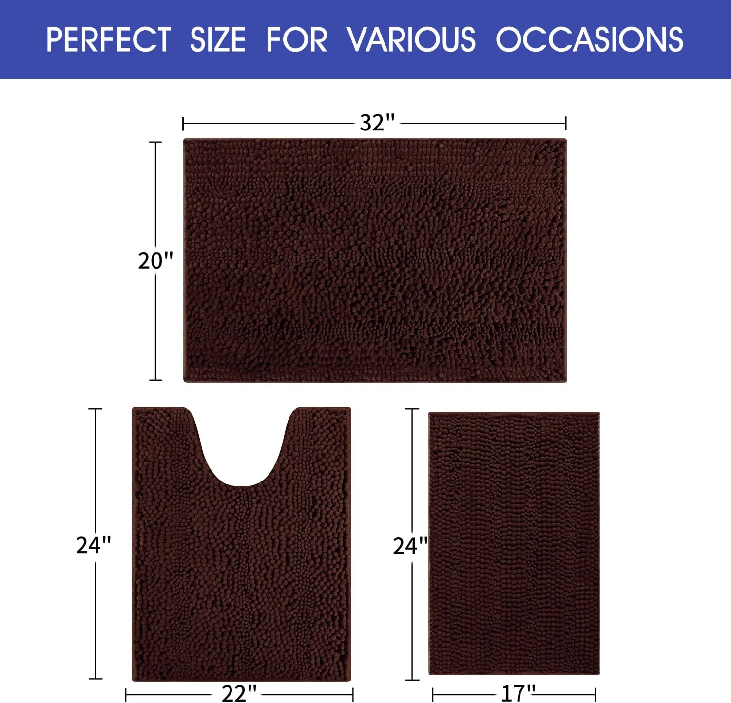 Pauwer Bathroom Rug Mat Set 3 Piece, Microfiber Shaggy Bath Set, Non-Slip Ultra Soft Carpet Mats, Absorbent with U-Shaped Toilet for Bathroom, Tub, Shower, Dark Grey